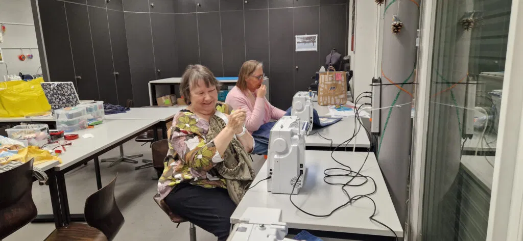 Dank des gut ausgestatteten Nähraums müssen Teilnehmende keine eigenen Maschinen oder umfangreiches Material mitbringen. Alles Notwendige ist vor Ort vorhanden, einzig ein wenig Geduld bei widerspenstigen Unterfäden sollte mitgebracht werden.